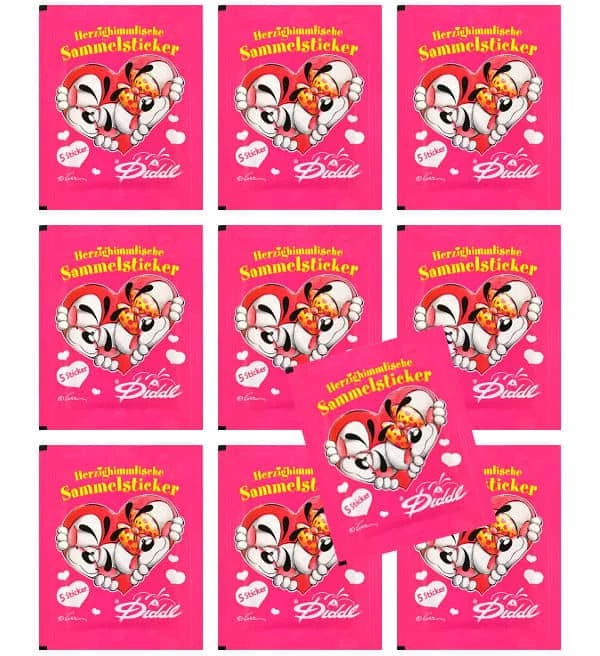 10 Tüten aus der “Blue Ocean Diddl und Diddlina – Herzighimmlisches Stickeralbum” Sticker-Kollektion. Jede Tüte enthält 5 Sammelbilder.