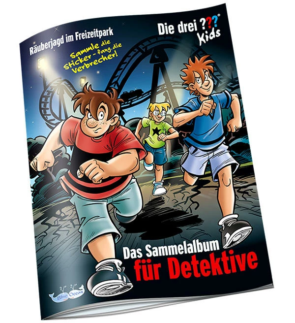 Das Stickeralbum zu “Die drei ??? Kids – Räuberjagd im Freizeitpark” ist nicht nur als Sammelheft für Detektive gedacht, sondern beinhaltet gleichzeitig viele in sich geschlossene Rätsel für Detektive, die am Ende bei der Lösung eines Gesamtfalls helfen. Daher steht die Kollektion auch unter dem Motto “Sammle die Sticker – fang die Verbrecher”.