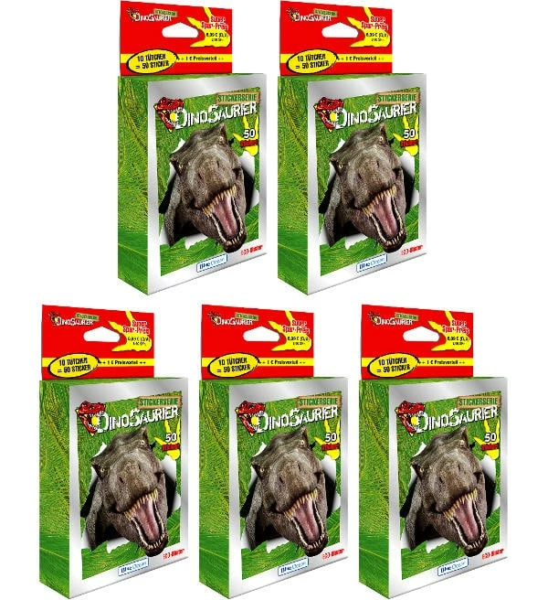 5 Blister mit insgesamt 50 Tüten (=250 Sticker) aus der “Blue Ocean Dinosaurier 2022” Sticker-Kollektion.