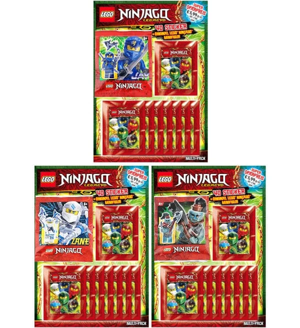 3 Multipack mit 3 verschiedenen Minifiguren aus der “LEGO Ninjago Legacy Serie 2” Sticker-Kollektion von Blue Ocean. Dieses Set enthält die folgenden 3 original LEGO Ninjago Minfiguren: