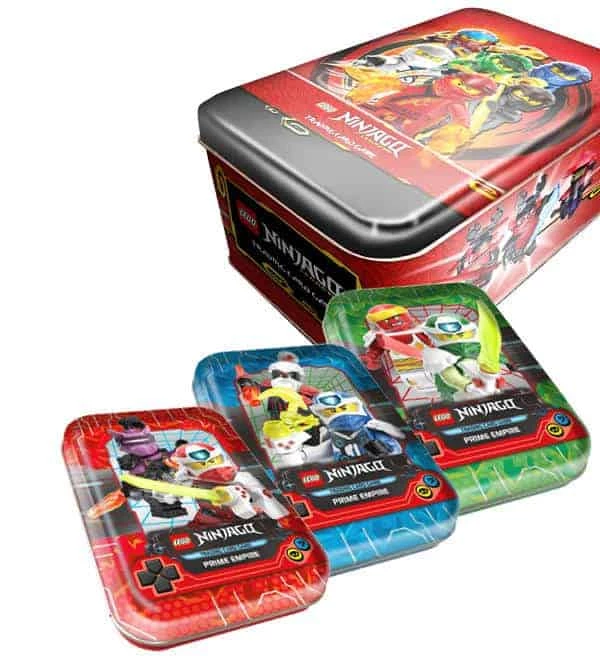 Tin Mega Set aus der LEGO® NINJAGO® Serie 5 Sammelkarten Serie bestehend aus “XXL Tin”, sowie den Mini-Tins “Grün”, “Rot” und “Blau”. Das Tin Mega Set zum Lego Ninjago Serie 5 Trading Card Game beinhaltet insgesamt: