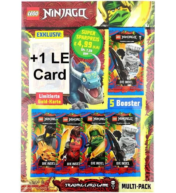 Lego Ninjago Serie 6 Multi-Pack mit 5 Tüten (=25 Ninjago Serie 6 Karten) plus 1 limitierte Karte. In jedem Multi-Pack des Lego Ninjago Serie 6 Trading Card Game ist eine von folgenden 3 limitierten Karten enthalten: