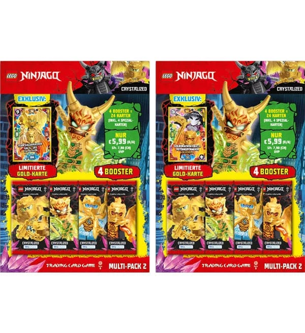 Die beiden verschiedenen “Lego Ninjago Serie 8 Multipack 2” mit insgesamt 8 Tüten (=48 Karten) und diesen 2 LE-Karten: