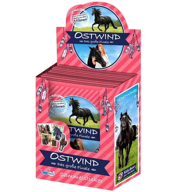 Ein Display aus der “Ostwind Das große Finale” Sticker-Kollektion von Blue Ocean mit 36 Tüten. Jede Tüte enthält 5 Sammelbilder.