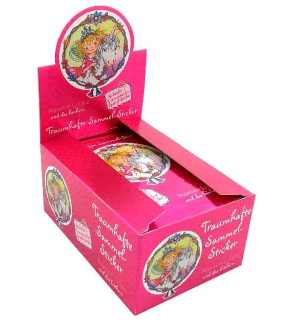 Ein Display aus der “Prinzessin Lillifee und das Einhorn” Sticker-Kollektion von Blue Ocean mit 50 Tüten. Jede Tüte enthält 5 Sammelbilder.