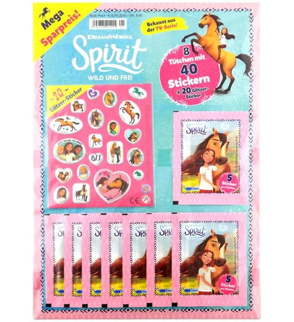 Multipack mit 8 Tüten (=40 Sticker) aus der Spirit Wild und Frei Sticker-Kollektion von Blue Ocean. Der Multipack enthält zusätzlich noch 20 Glitzer-Sticker.